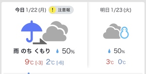 今日、明日はかな〜り冷え込みの様子です