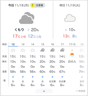 18日は月曜日!くもり!