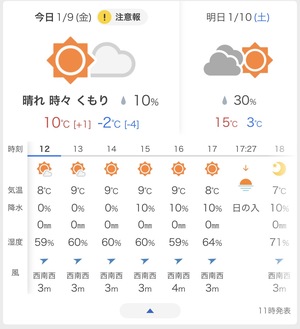 9日は金曜日!晴れた!