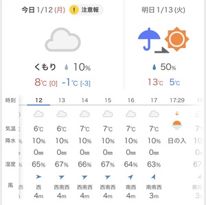 12日は月曜日!くもり!